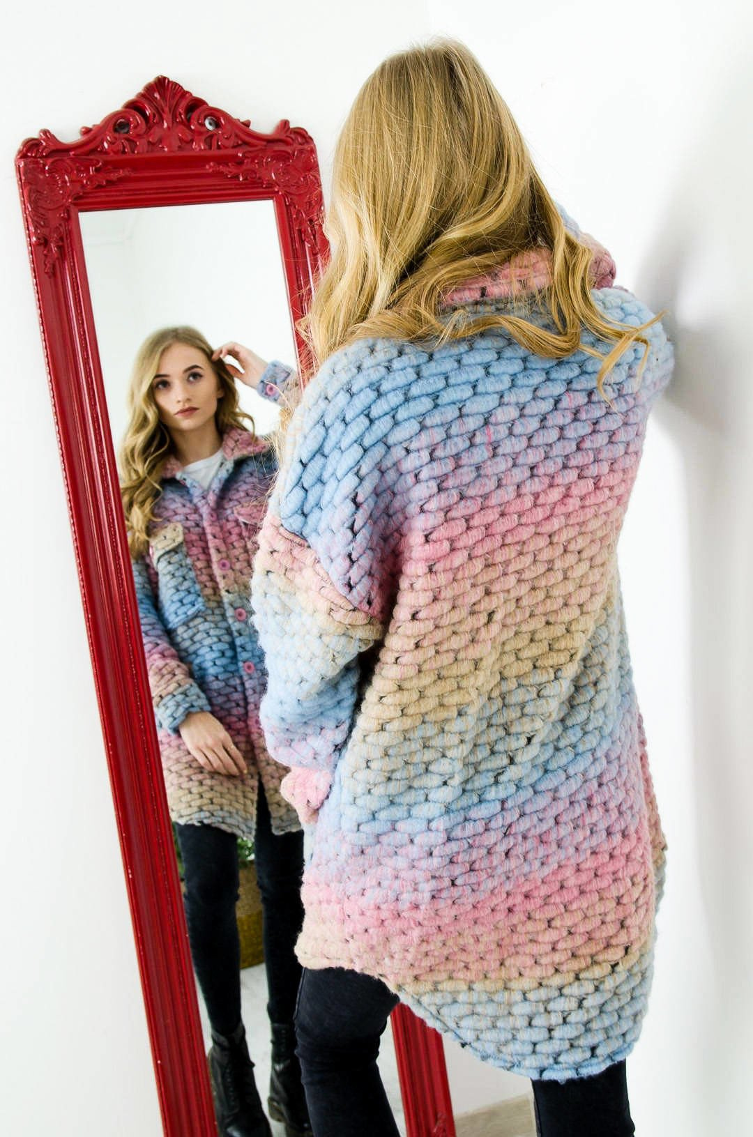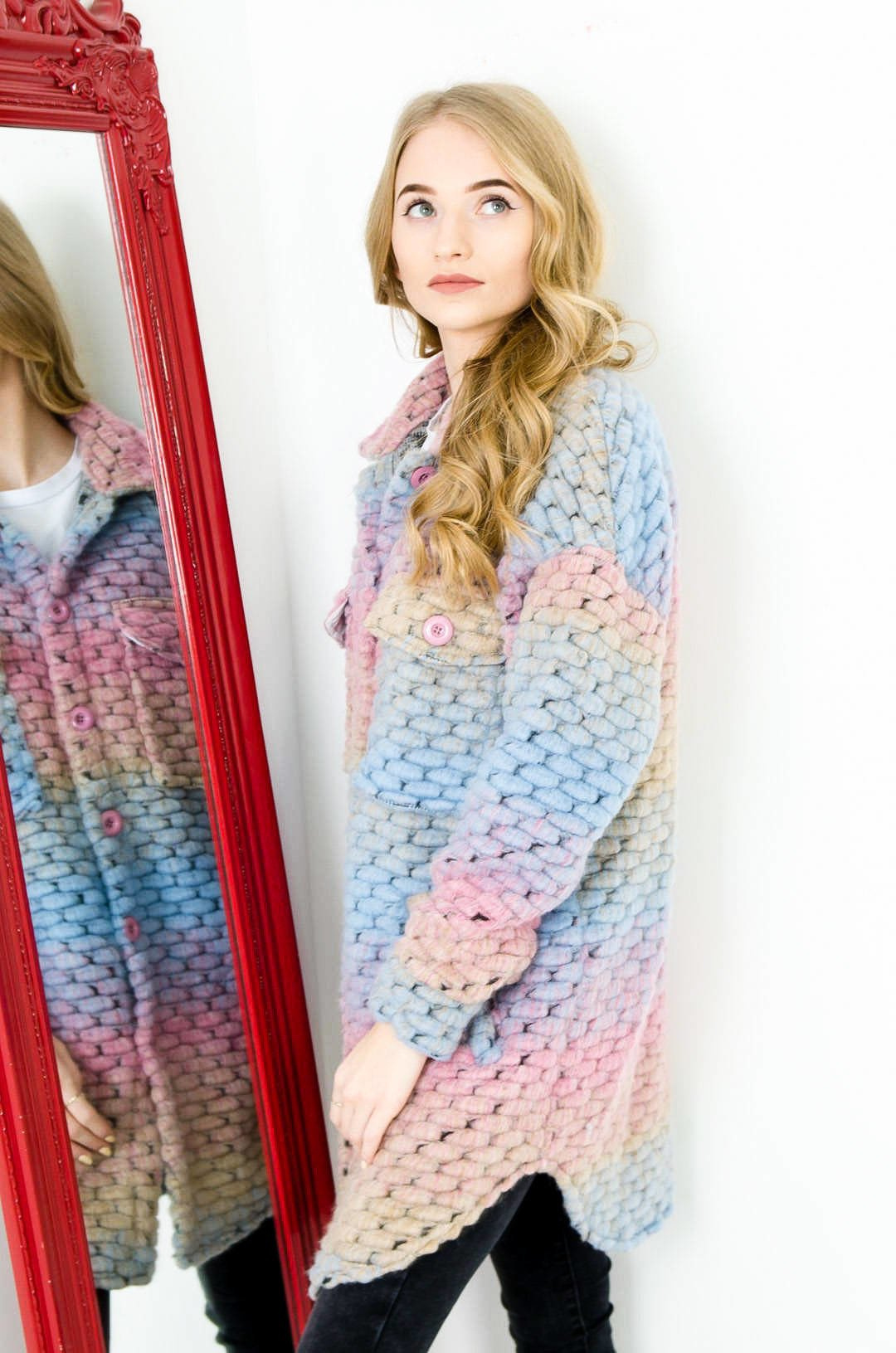 WIOSENNY PŁASZCZYK MULTIKOLOR - NIEBIESKO-RÓŻOWY