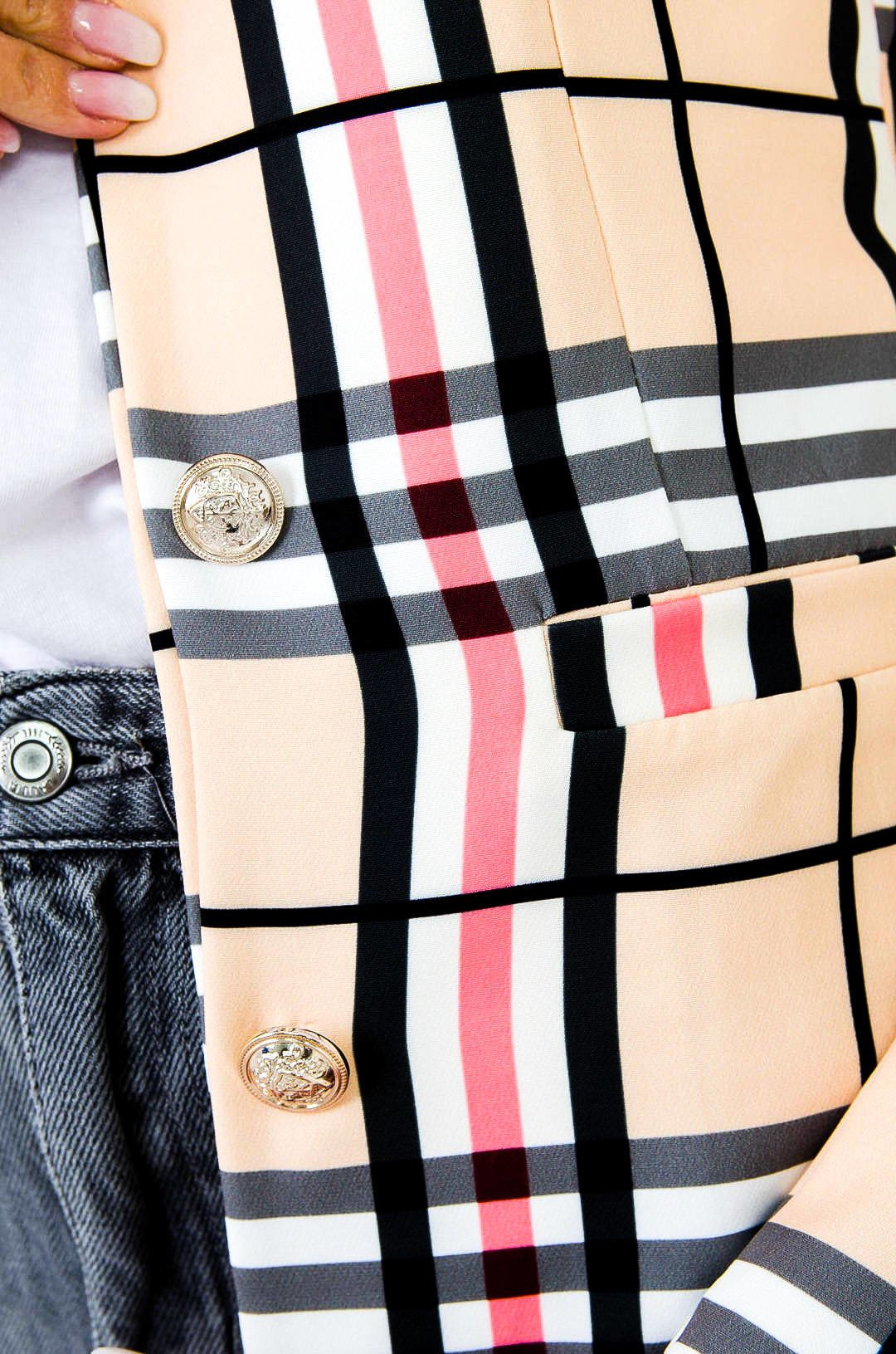 BEŻOWA MARYNARKA W KRATĘ ( S-L )