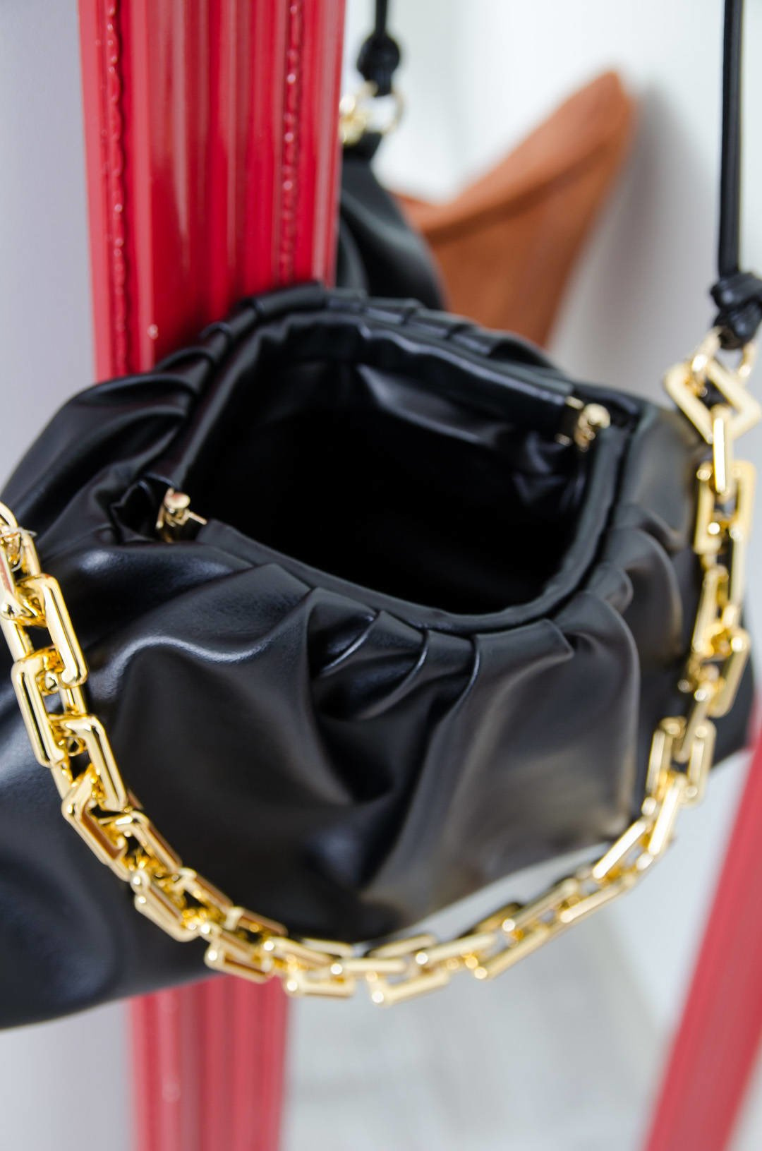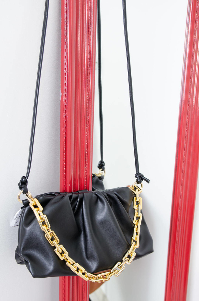 CZARNA KOKTAJLOWA TOREBKA ZE ZŁOTYM ŁAŃCUSZKIEM