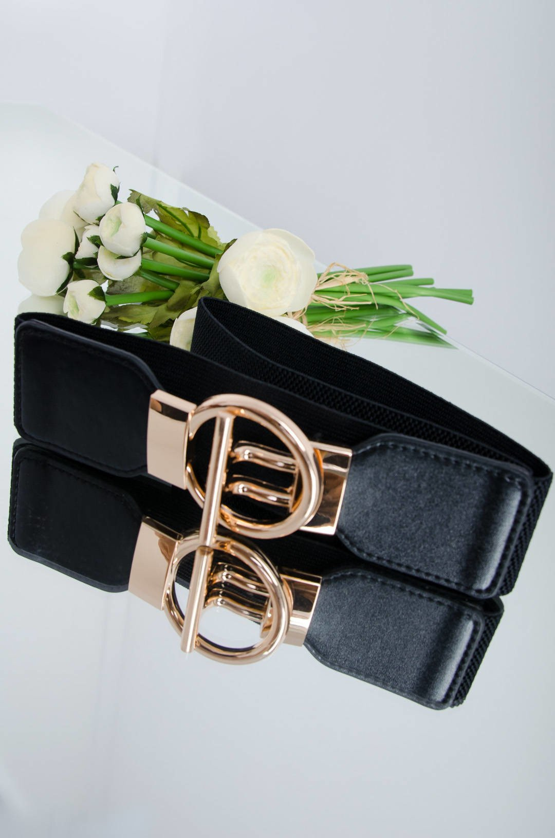 CZARNY PASEK NA GUMIE-ZŁOTA KLAMRA