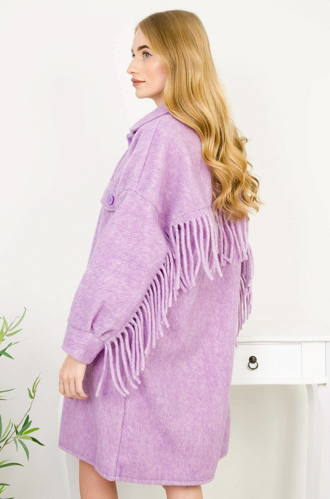 DŁUGA WEŁNIANA KURTKA /PŁASZCZ Z FRĘDZLAMI