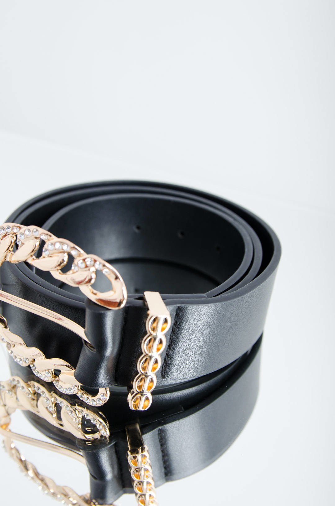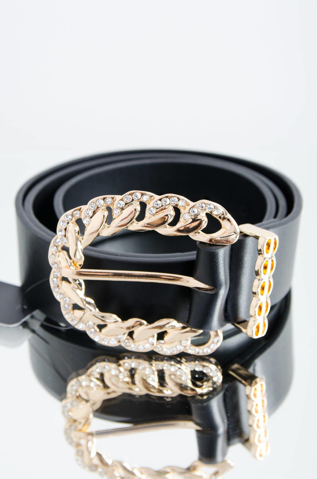 CZARNY PASEK Z OZDOBNĄ KLAMRĄ