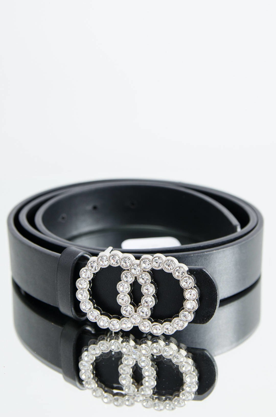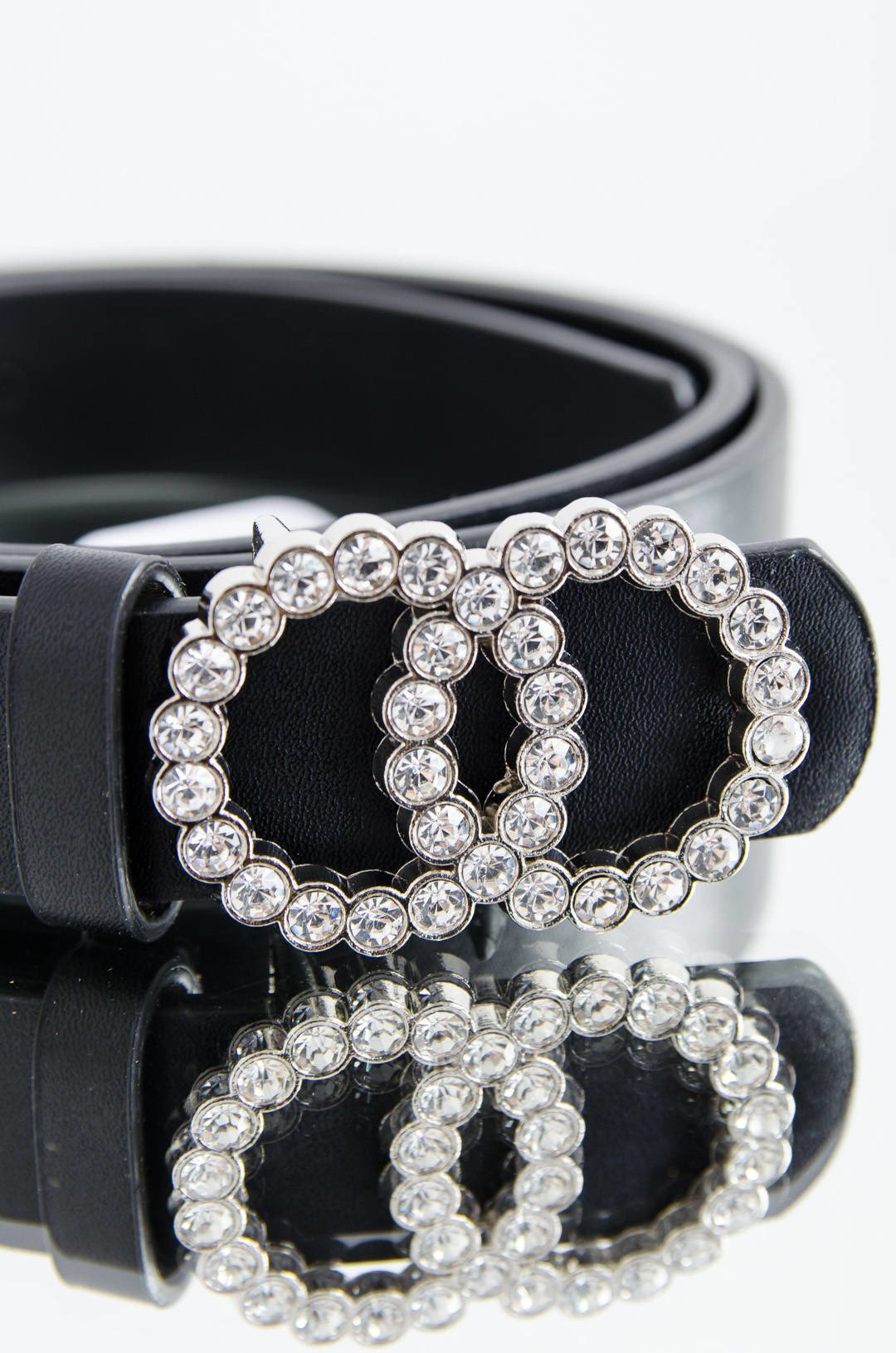DAMSKI CZARNY PASEK Z PODWÓJNĄ KLAMRĄ CYRKONIE