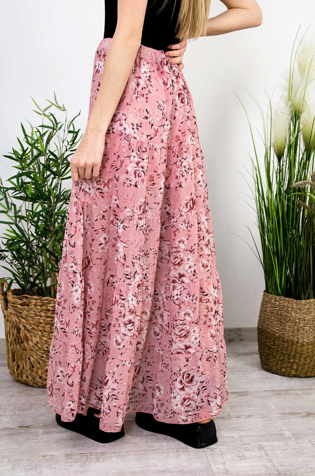 RÓŻOWA SPÓDNICA MAXI W KWIATY Z ROZCIĘCIEM.