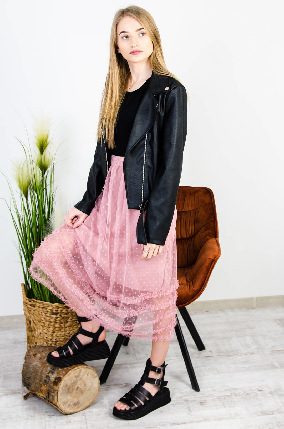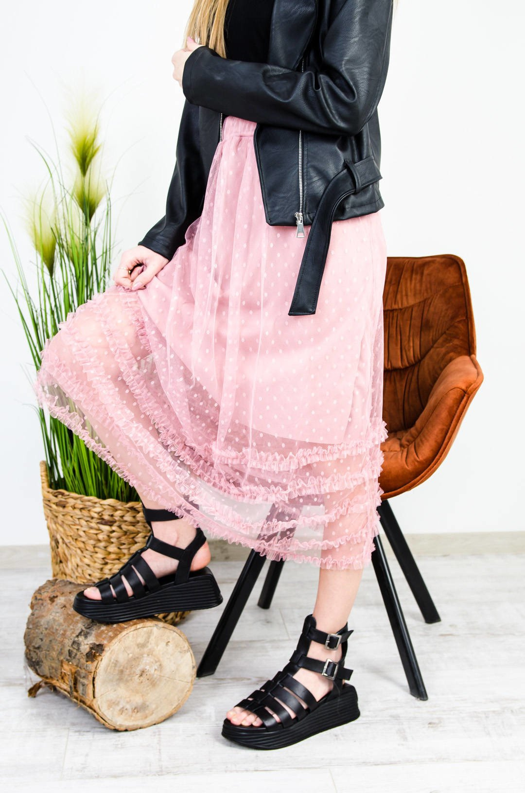 RÓŻOWA SPÓDNICA MIDI Z TIULEM