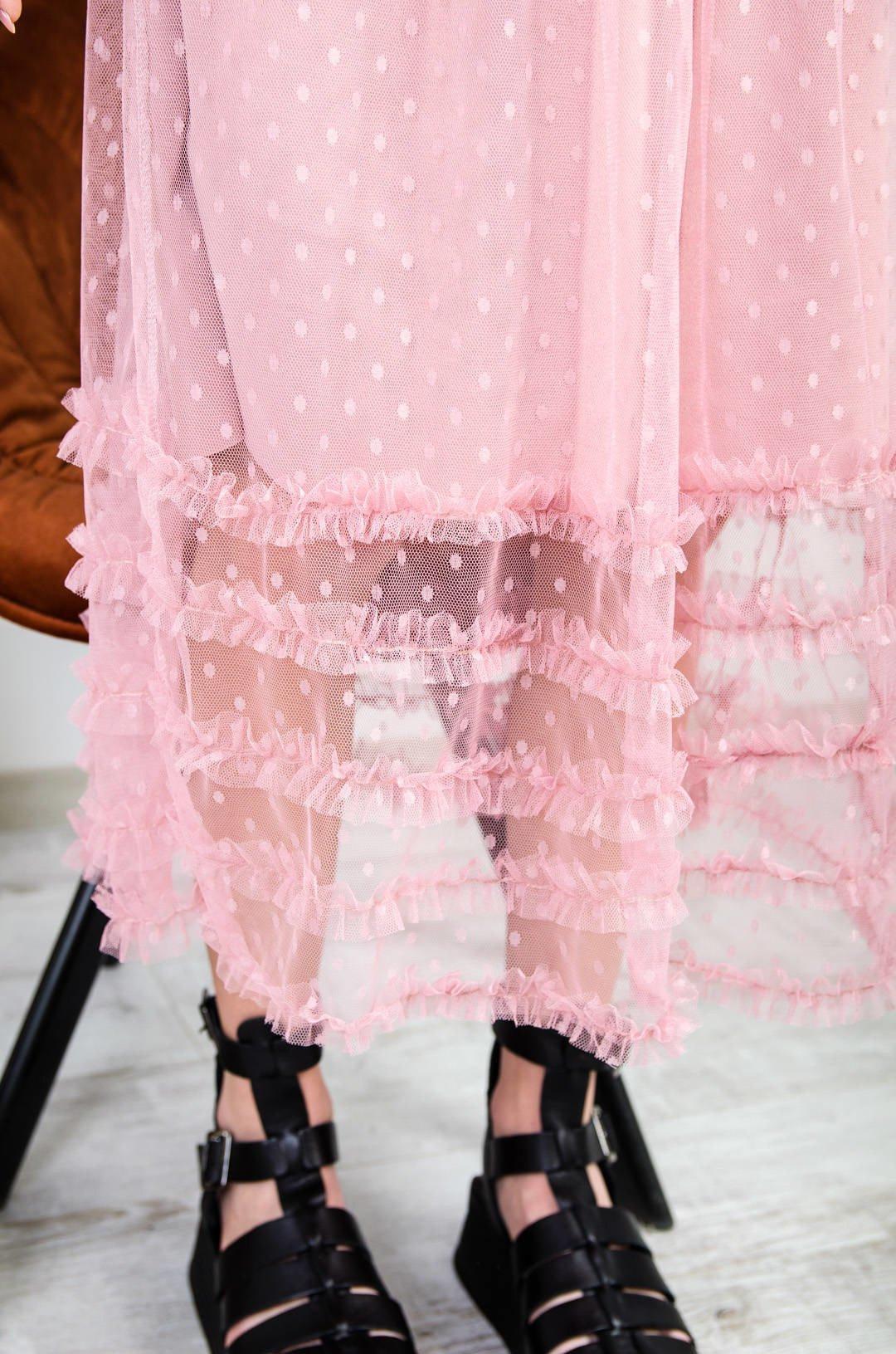RÓŻOWA SPÓDNICA MIDI  Z TIULEM
