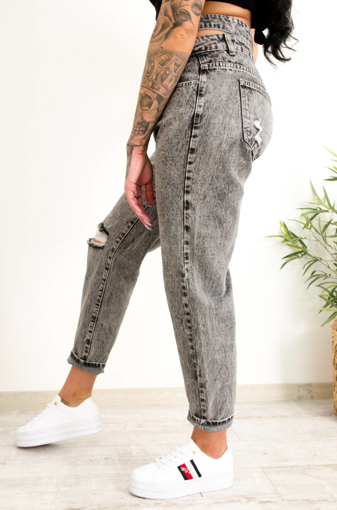 SZARE SPODNIE JEANSOWE MOM FIT Z WYCIECIEM W TALII