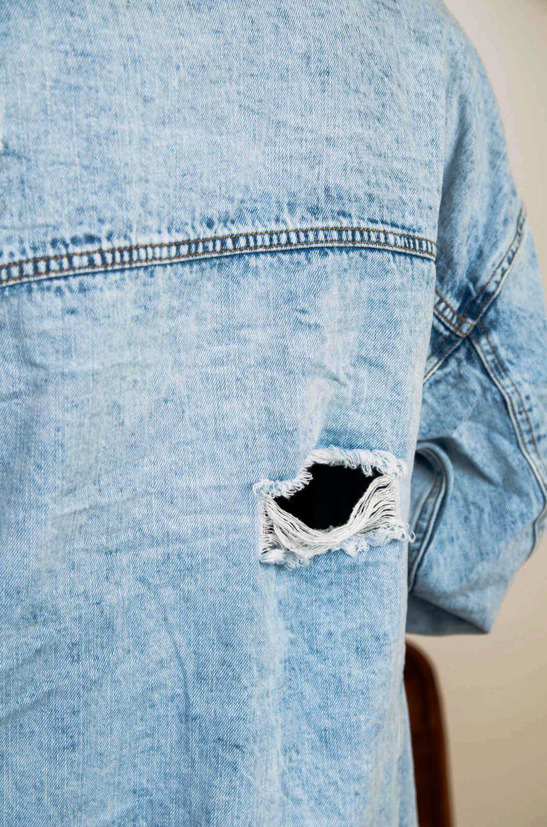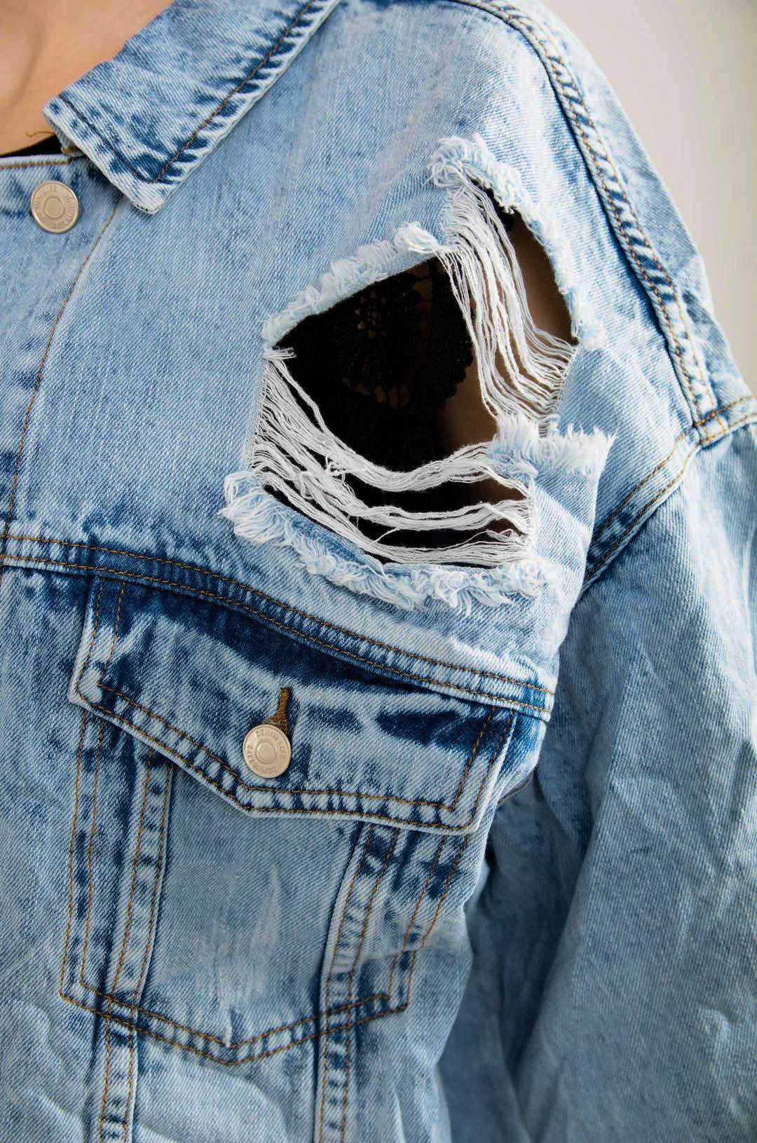 DŁUGA KURTKA JEANSOWA Z PRZETARCIAMI  ( DUŻE ROZMIARY M-3XL )