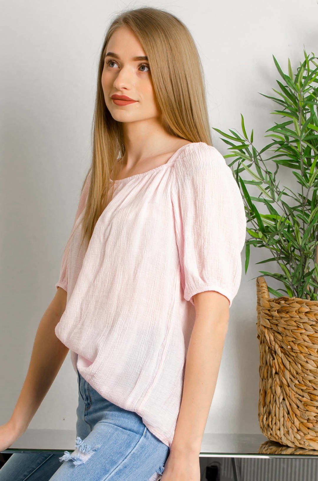 RÓŻOWA BLUZKA Z KWADRATOWYM DEKOLTEM