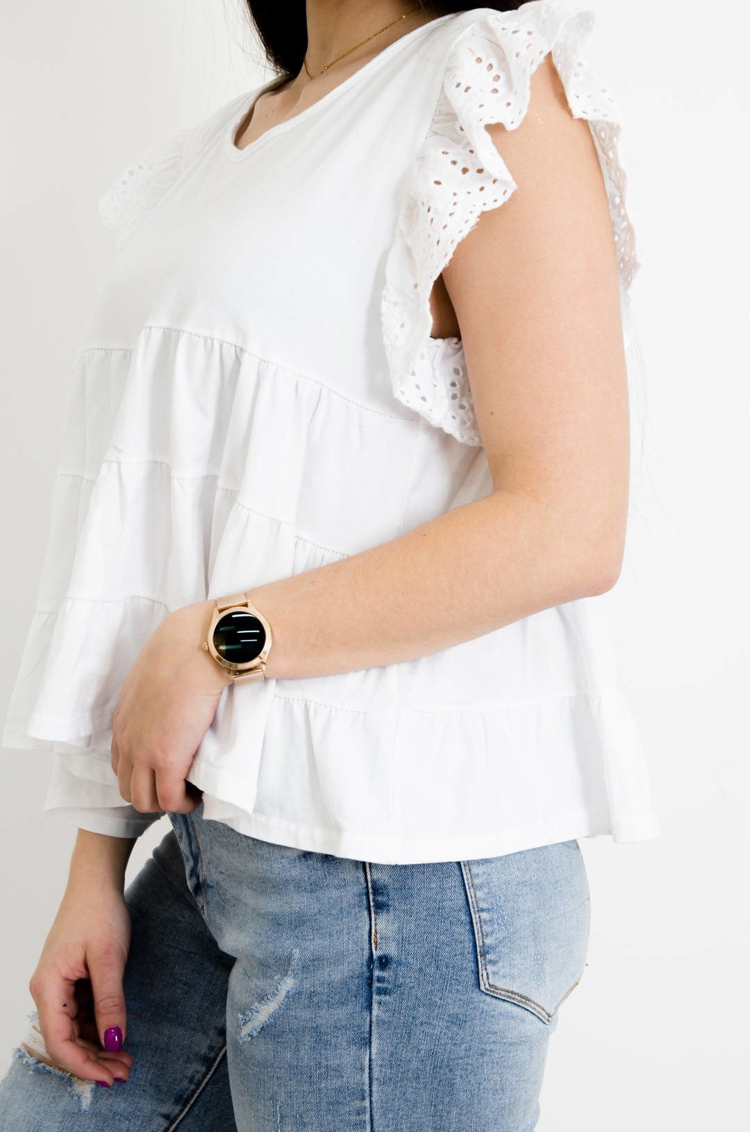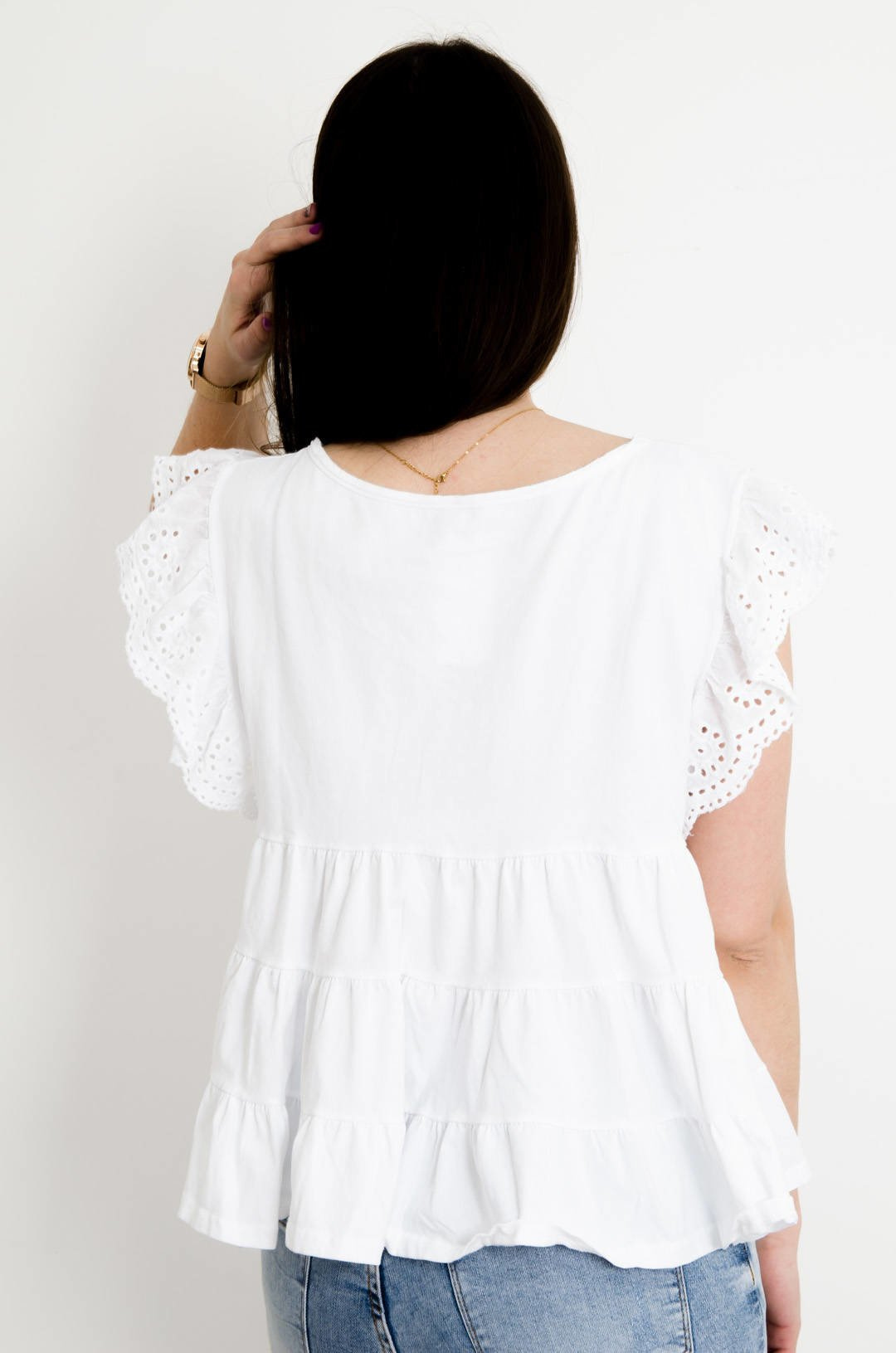 BIAŁA ROZKLOSZOWANA BLUZKA Z AŻUROWYMI RĘKAWAMI