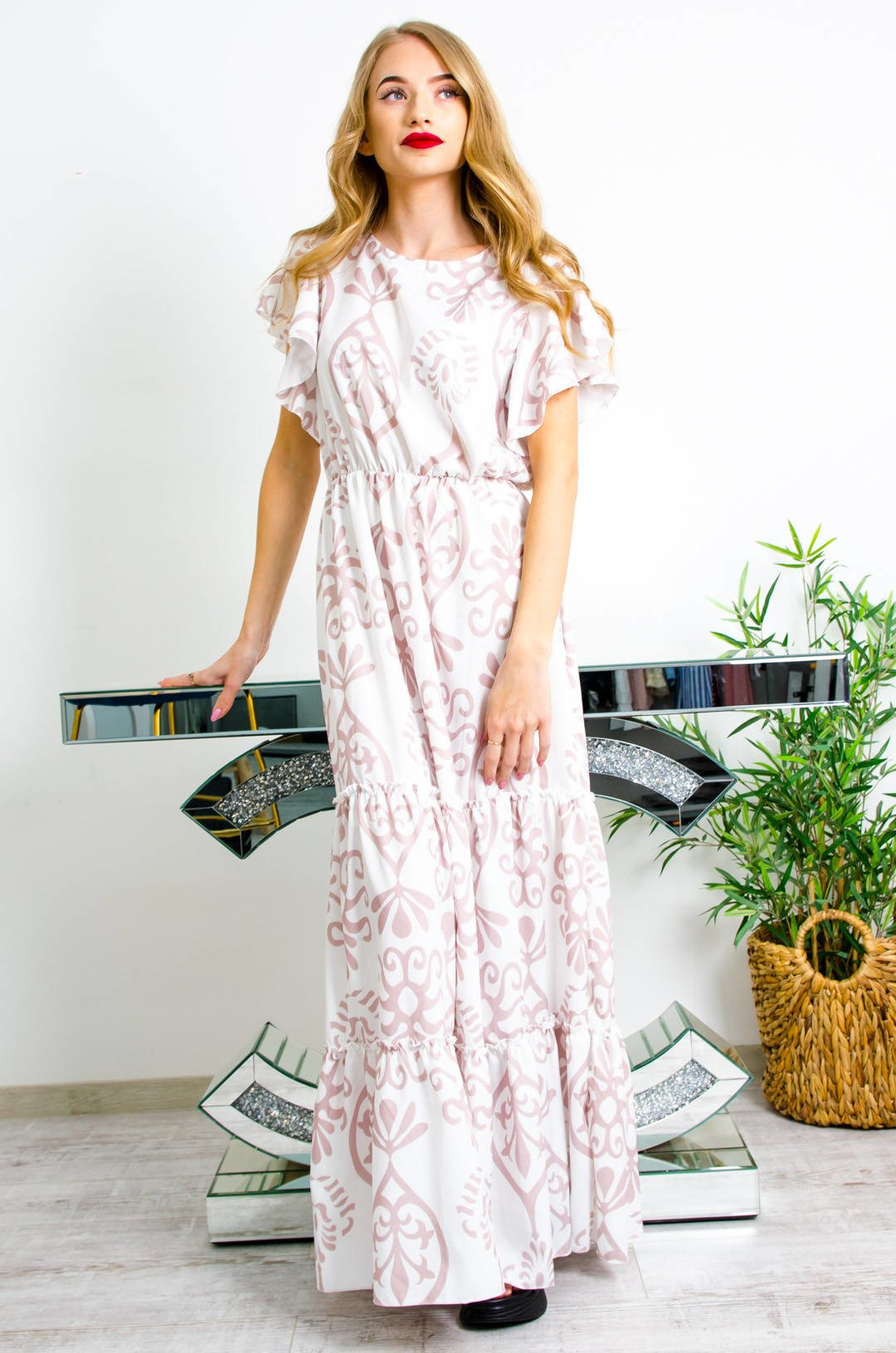 DŁUGA BIAŁO-BEŻOWA SUKIENKA MAXI