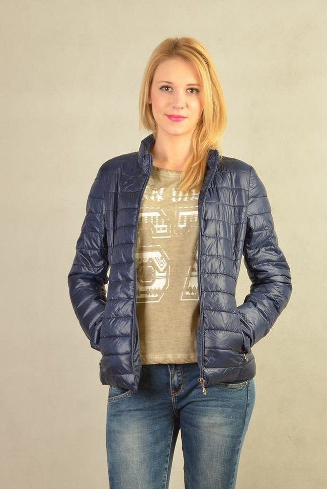 Kurtka pikowana ortalionowa, zapinana na zamek, dwie kieszenie po bokach.