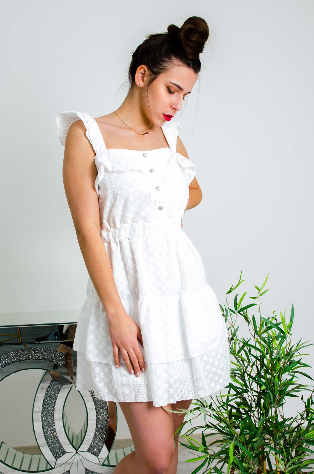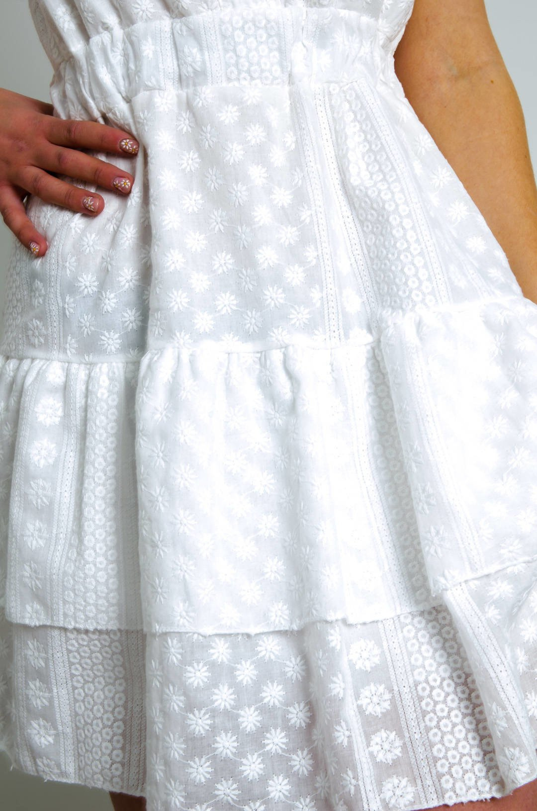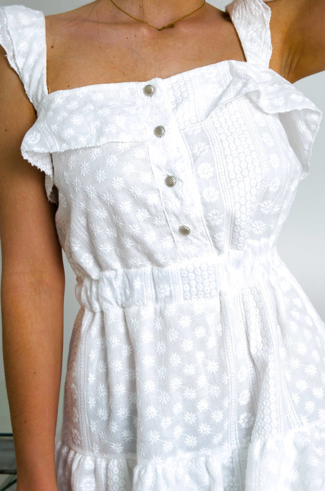 BIAŁA AŻUROWA ROZKLOSZOWANA SUKIENKA MINI