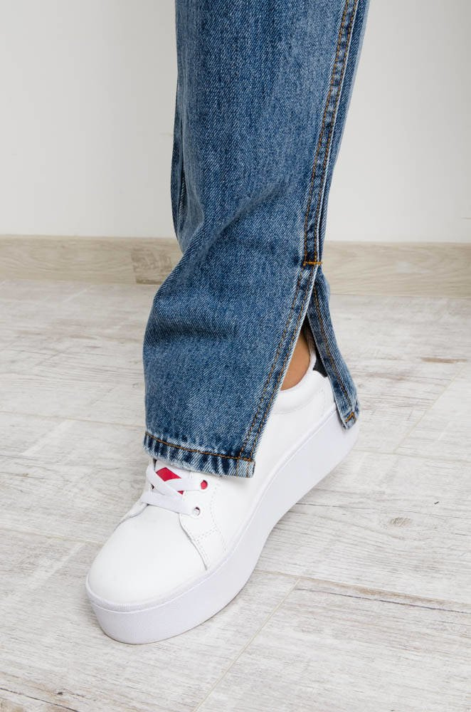 SPODNIE JEANSOWE Z DZIURAMI I ROZCIĘCIEM NA NOGAWCE - WYSOKI STAN