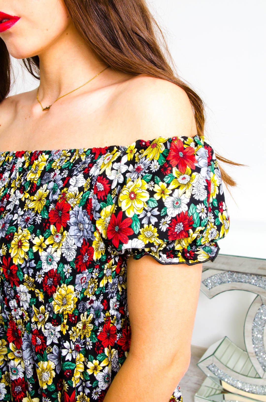 CZARNA DŁUGA SUKIENKA HISZPANKA W KWIATY