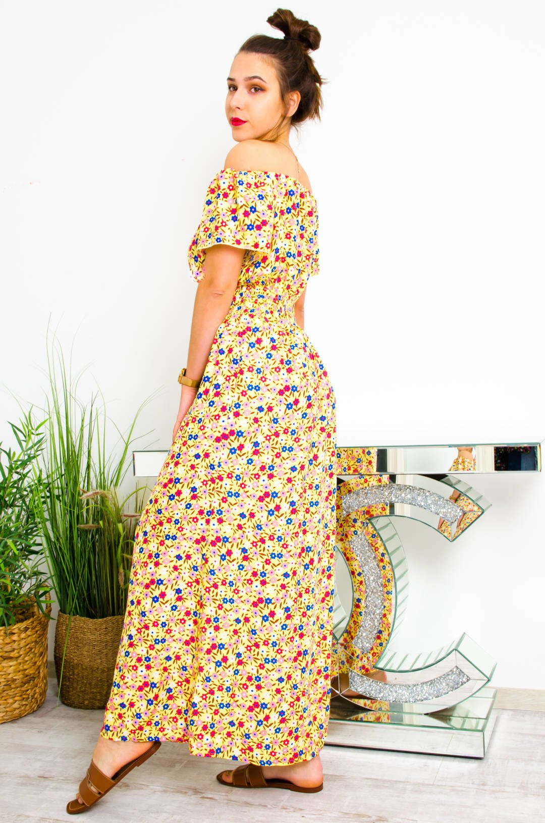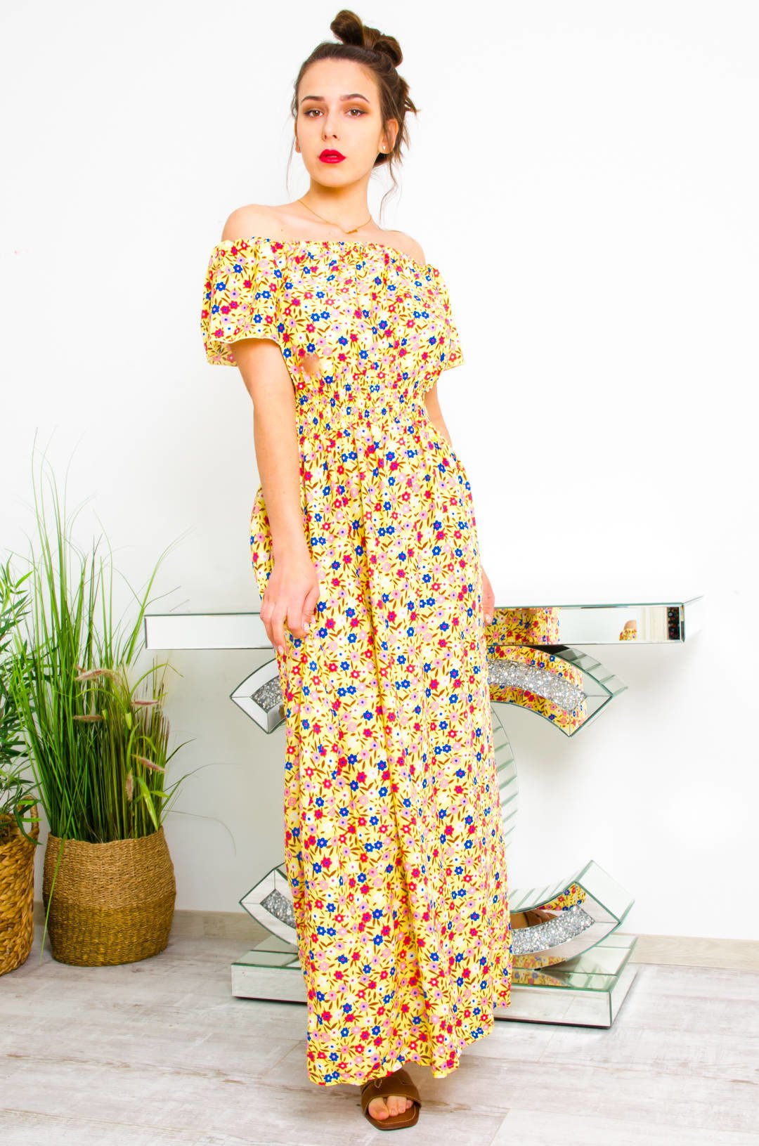 ŻÓŁTA DLUGA SUKIENKA W KWIATY