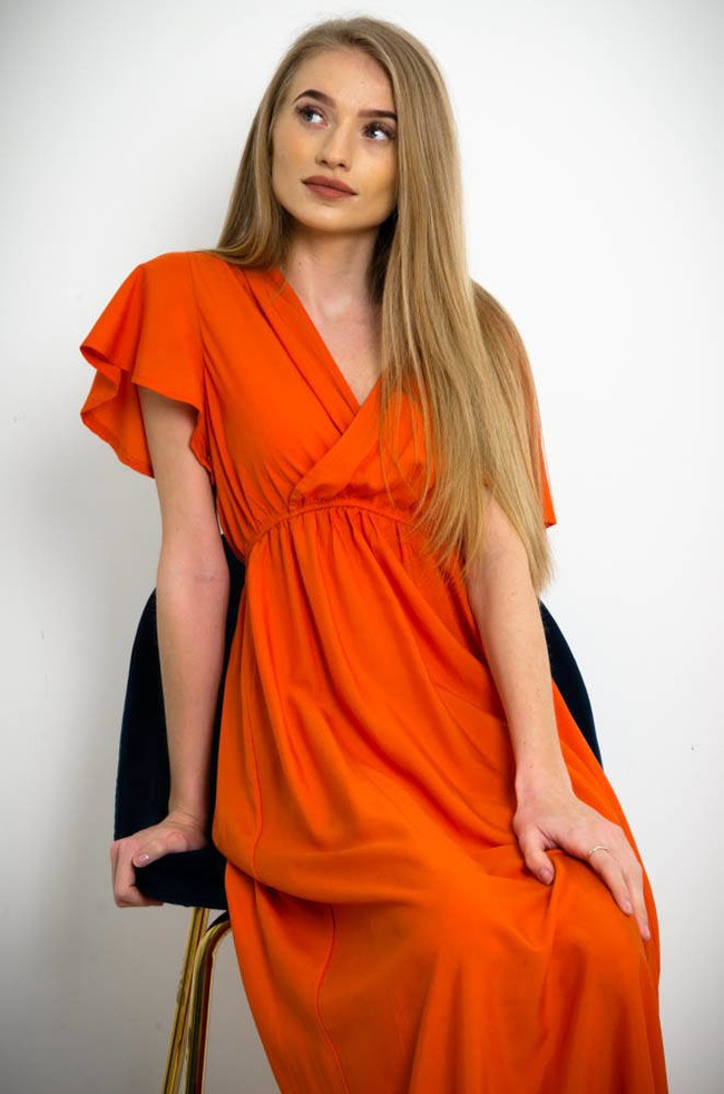 DŁUGA SUKIENKA MAXI Z KOPERTOWYM DEKOLTEM W KOLORZE POMARAŃCZOWYM
