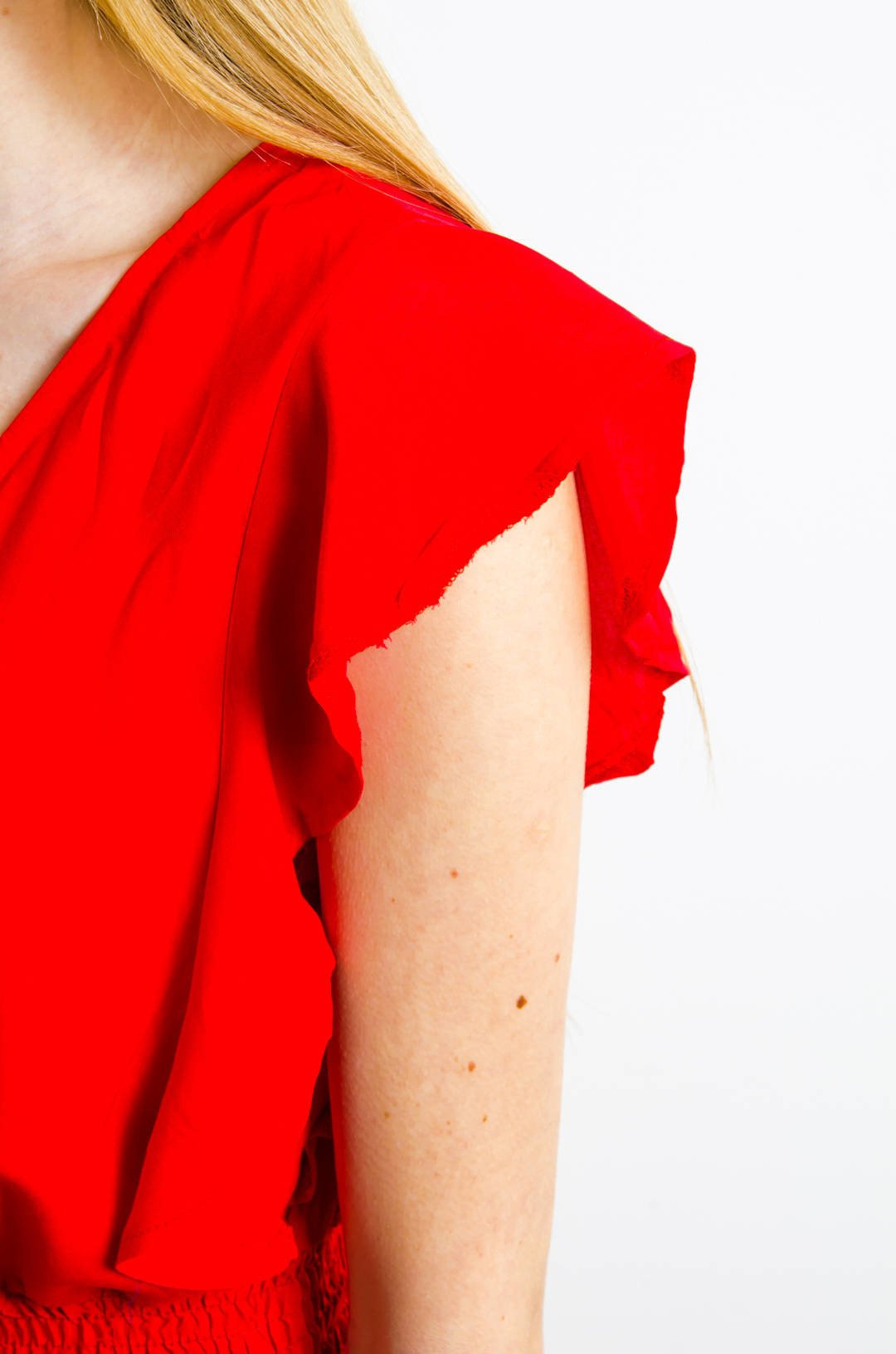 DŁUGA CZERWONA SUKIENKA Z KOPERTOWYM DEKOLTEM