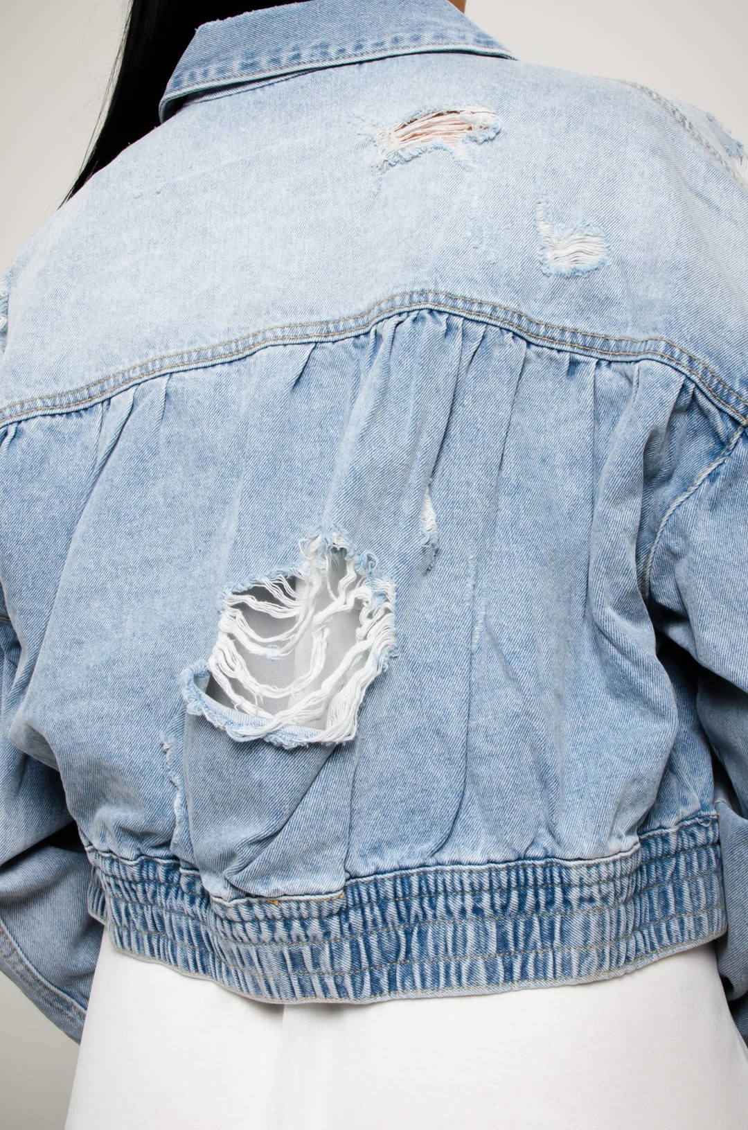 JASNA JEANSOWA KURTKA BOMBERKA Z PRZETARCIAMI