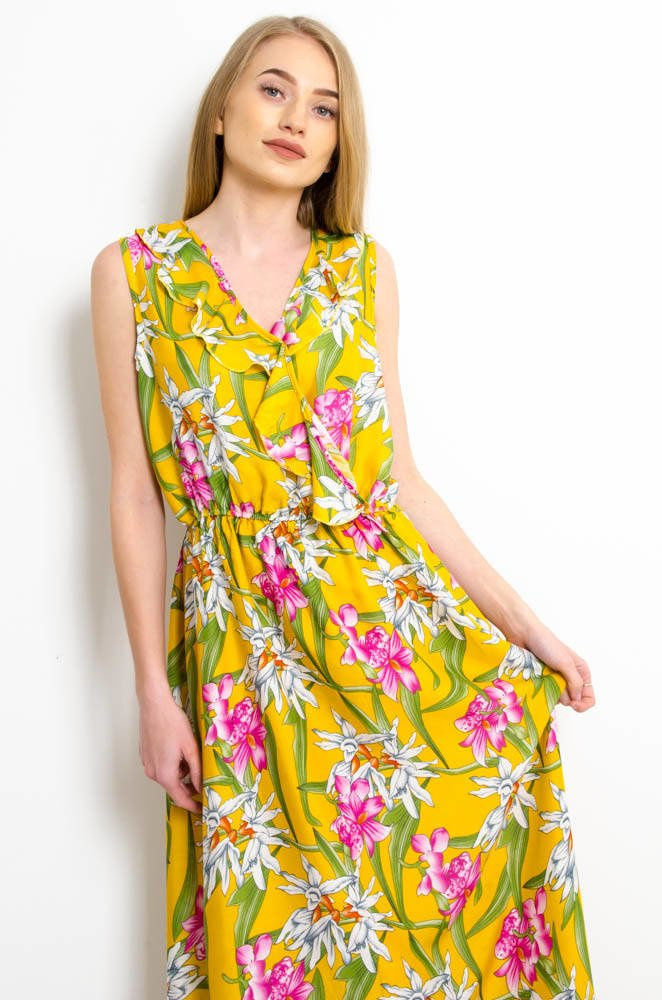 ŻÓŁTA SUKIENKA MAXI W KWIATY Z FALBANKĄ W DEKOLCIE