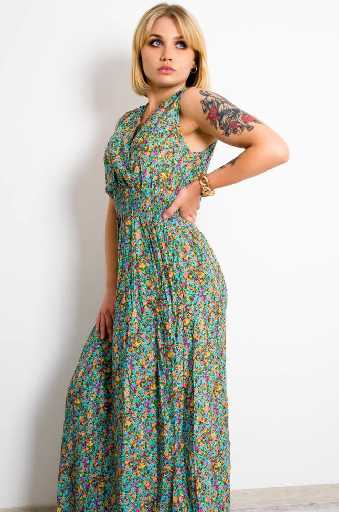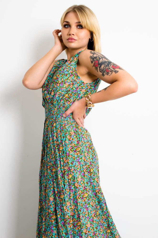 JASNO NIEBIESKA SUKIENKA MAXI W KWIATY-KOPERTOWY DEKOLT