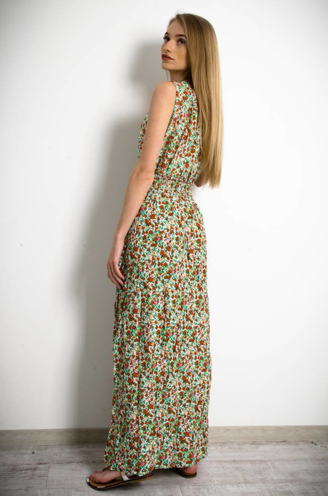 BIAŁA SUKIENKA MAXI W KWIATY-KOPERTOWY DEKOLT
