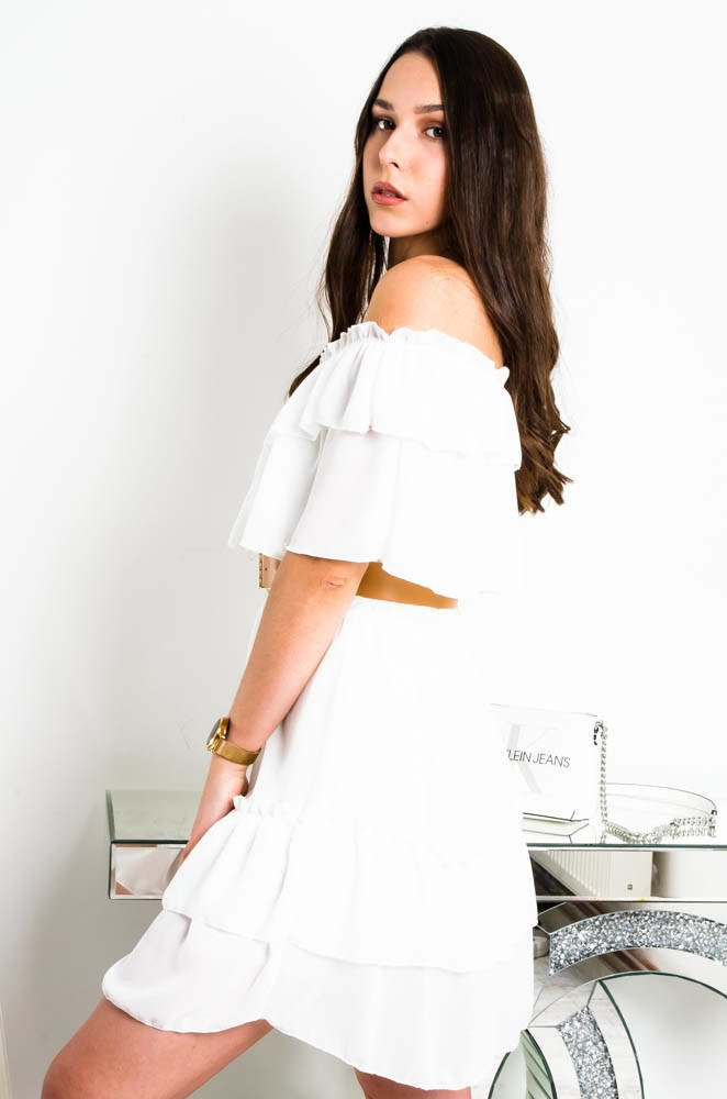 BIAŁA SUKIENKA HISZPANKA Z GUMĄ W PASIE
