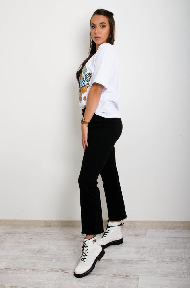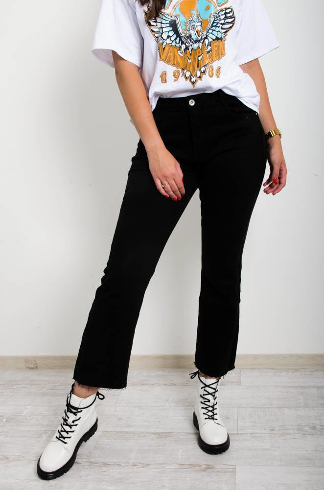 CZARNE SPODNIE JEANSOWE SHORT FLARE-WYSOKI STAN