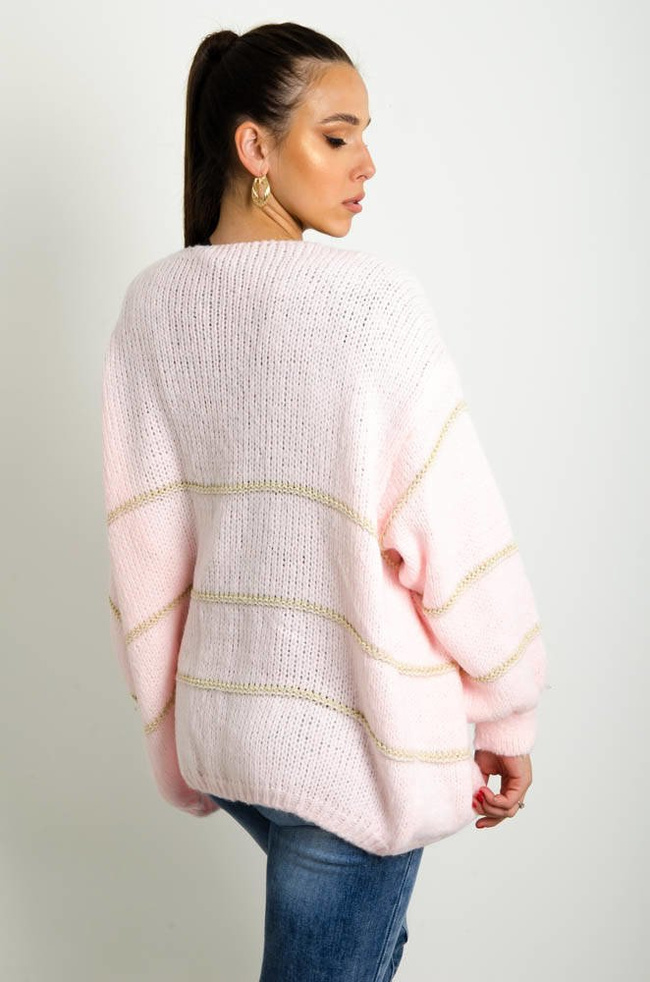 RÓŻOWO-ZŁOTY SWETER KARDIGAN - NARZUTA