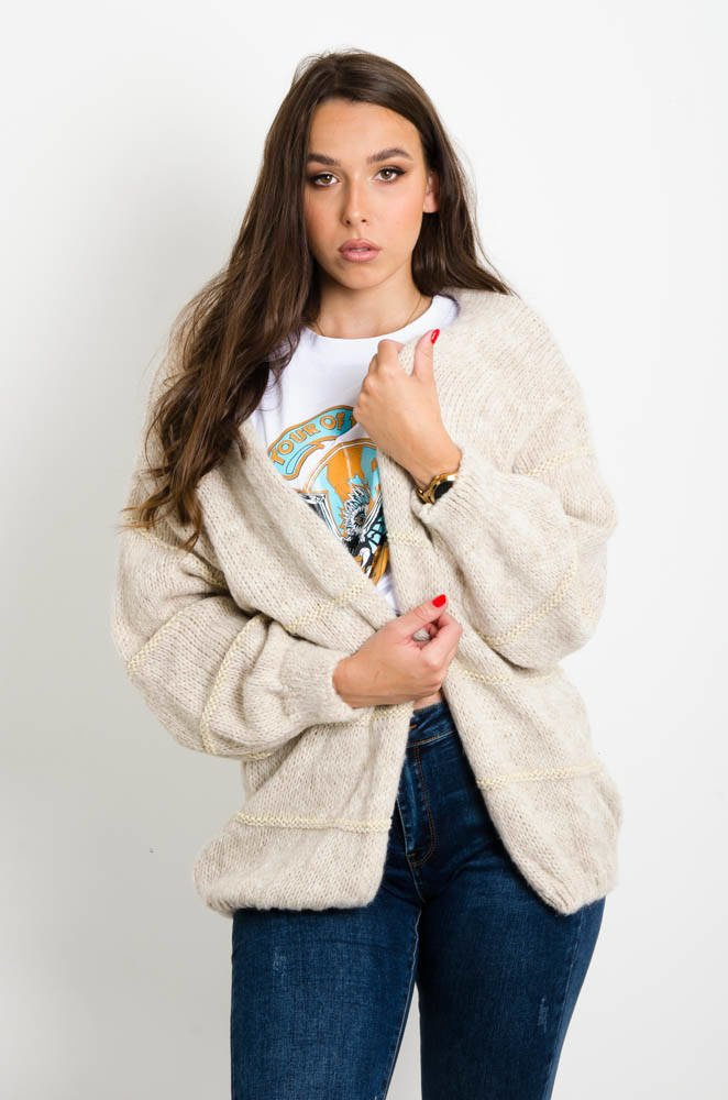 BEŻOWO-ZŁOTY SWETER KARDIGAN - NARZUTA