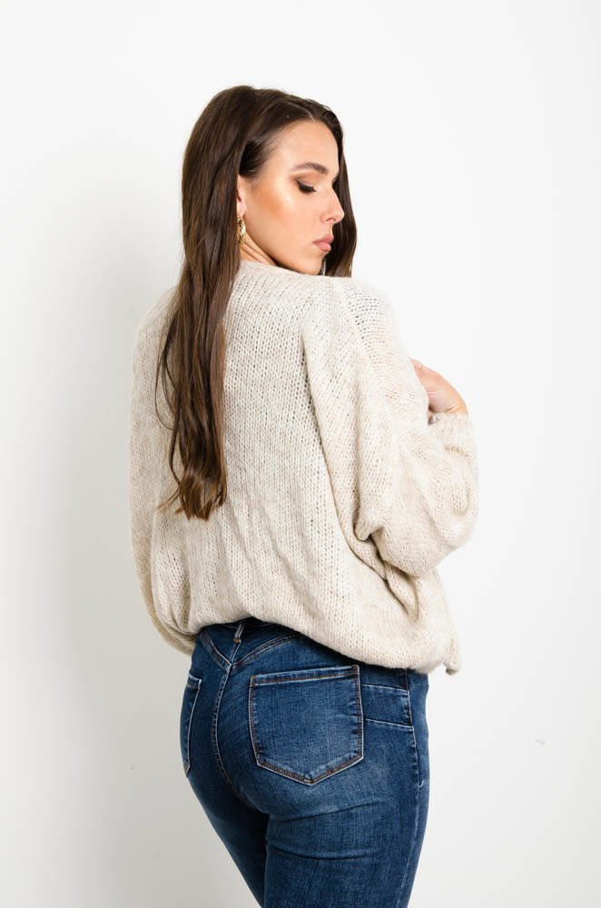 KRÓTKI KARDIGAN SWETER ZAPINANY NA GUZIKI Z DEKOLTEM W SEREK