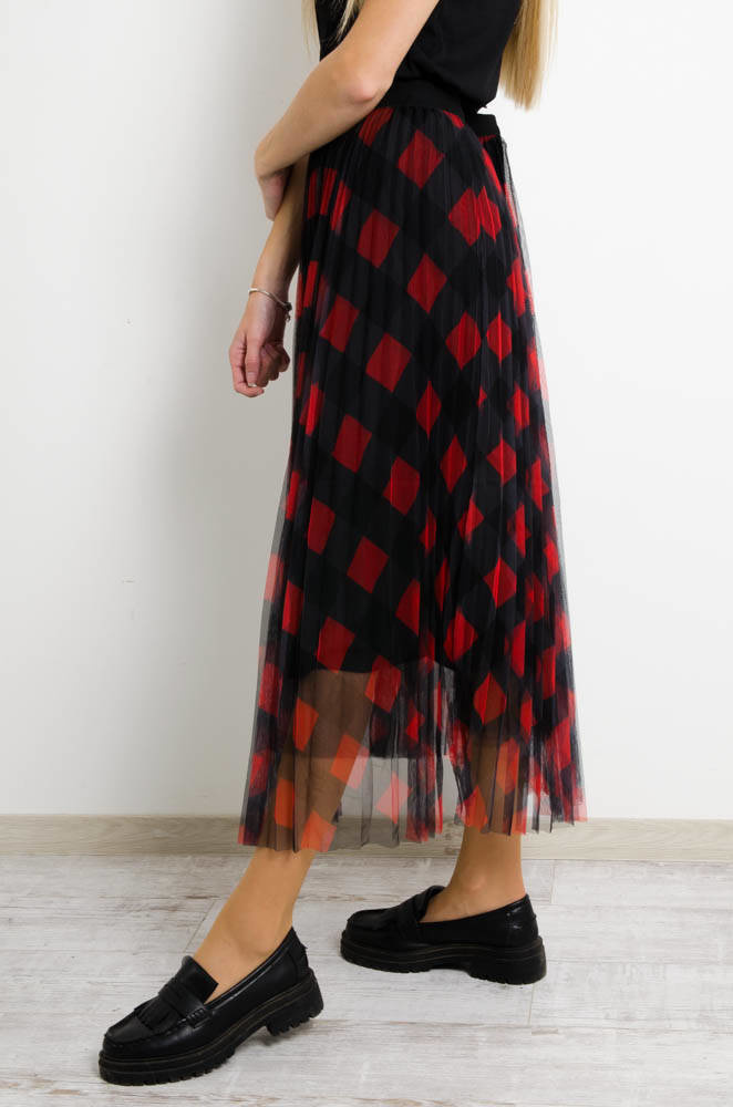 CZERWONA SPÓDNICA TIULOWA W KRATĘ