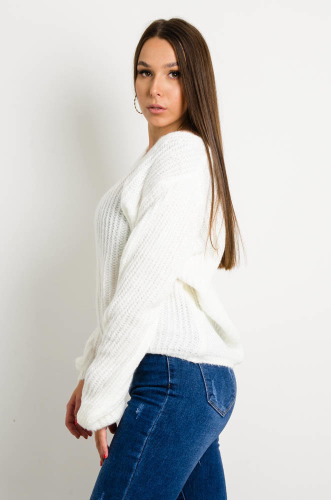 BIAŁY SWETER Z DEKOLTEM W SZPIC