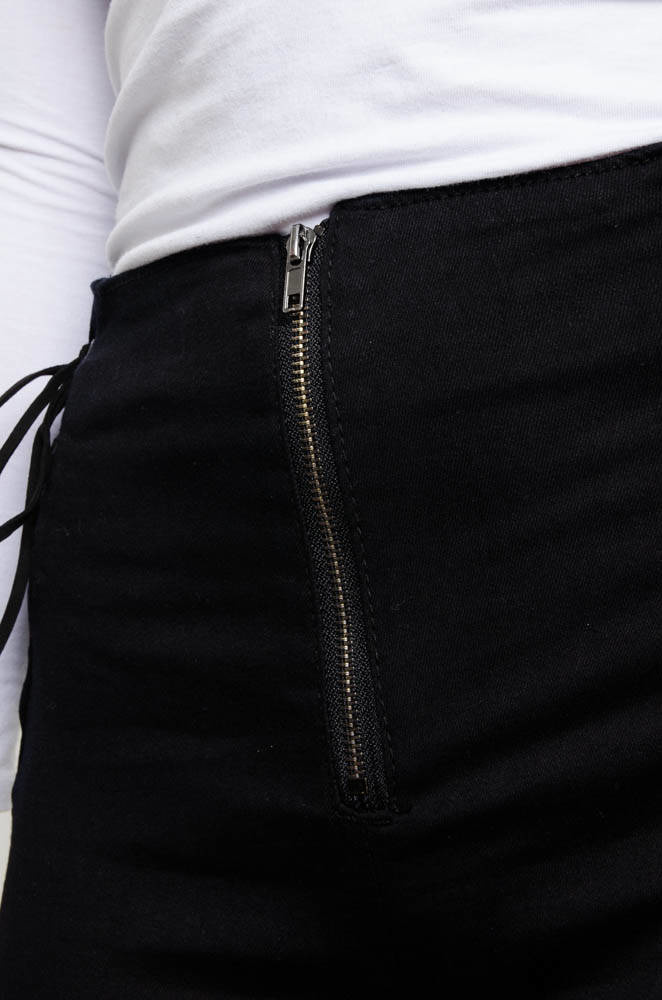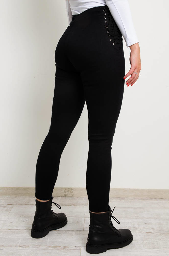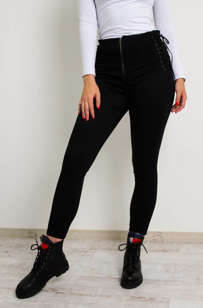 CZARNE WYSZCZUPLAJĄCE SPODNIE Z WIĄZANIAMI PO BOKACH-WYSOKI STAN.