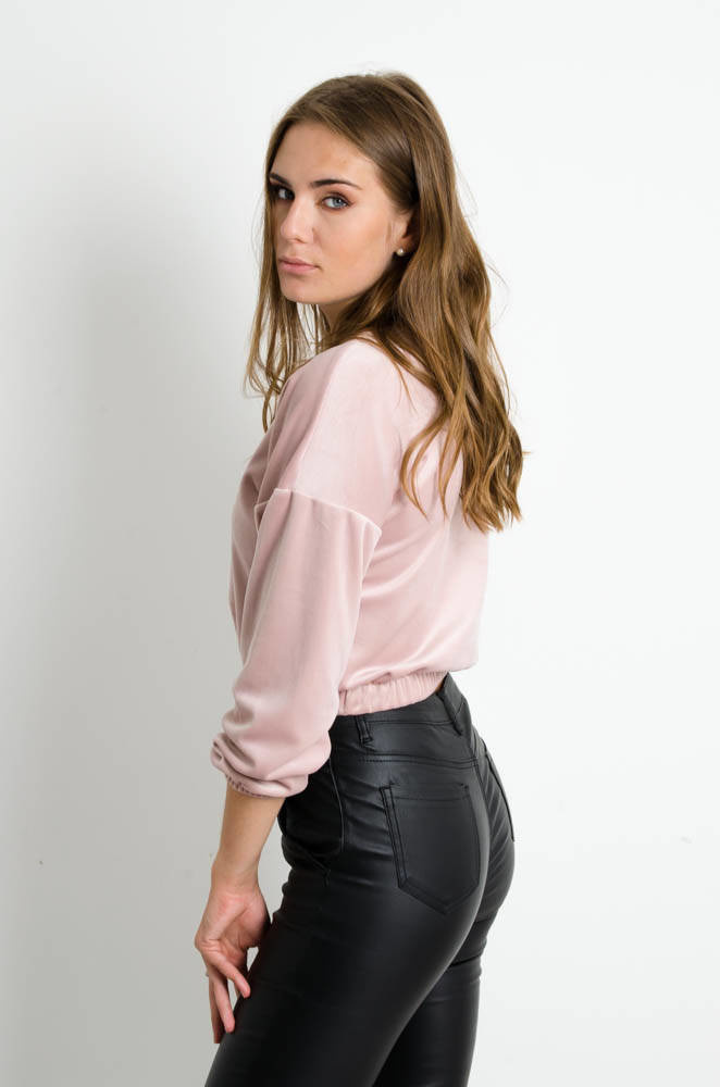 RÓŻOWA KRÓTKA BLUZA WELUROWA