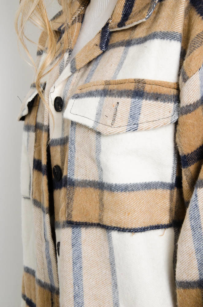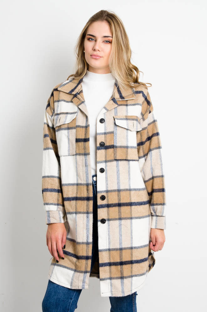 BEŻOWA FLANAELOWA KURTKA KOSZULOWA W KRATĘ