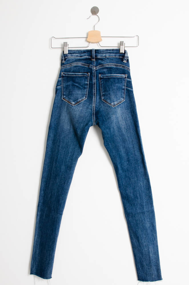 Jeansy z funkcją stretchu, który trzyma i modeluje talię, uda i pośladki oraz zachowuje kształt jeansów. Modelujące przeszycia- PUSH UP. Wysoki stan, rozporek na suwak i guzik. Obcisłe nogawki.