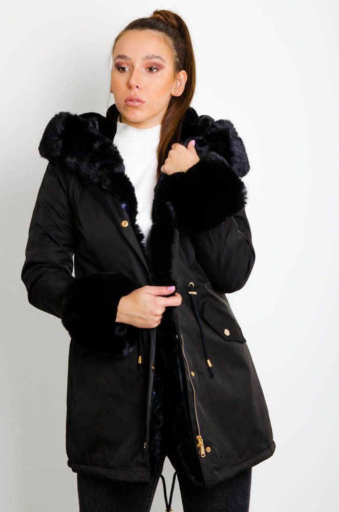 CZARNA KURTKA PARKA ZIMOWA Z ODPINANYM FUTERKIEM