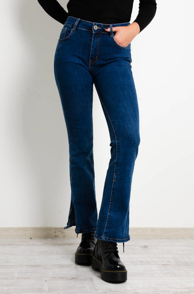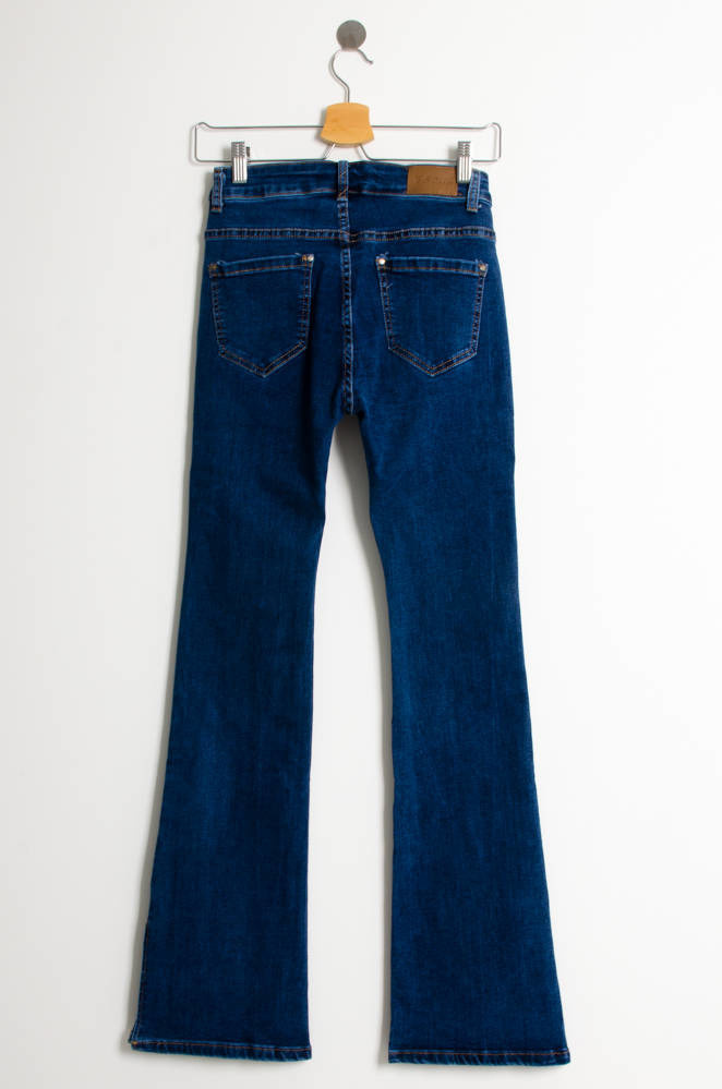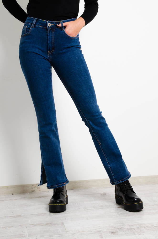 NIEBIESKIE SPODNIE JEANSOWE DZWONY Z ROZCIĘCIEM