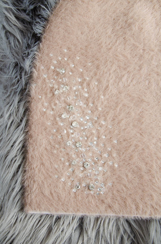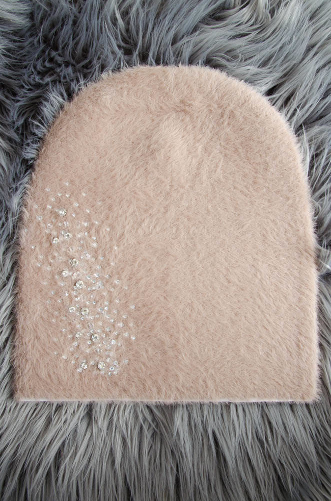 BRĄZOWA FUTRZANA CZAPKA Z OZDOBNYMI KRYSZTAŁKAMI