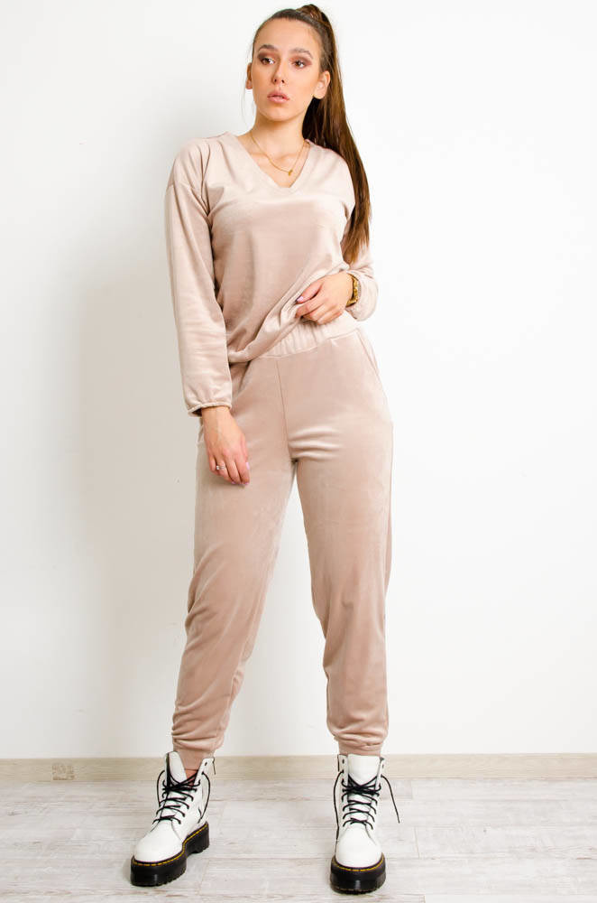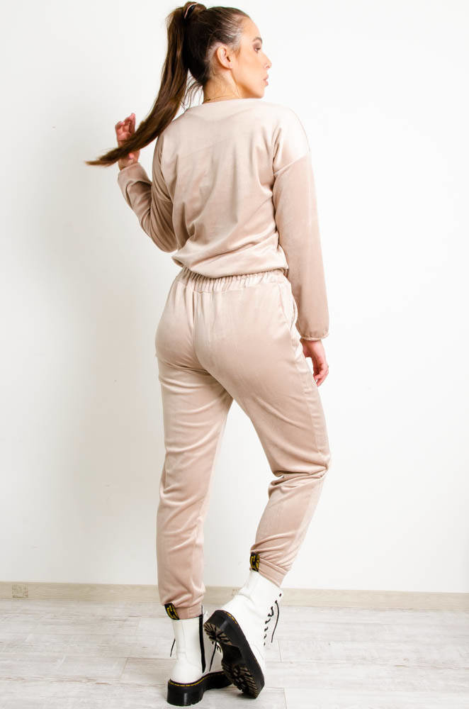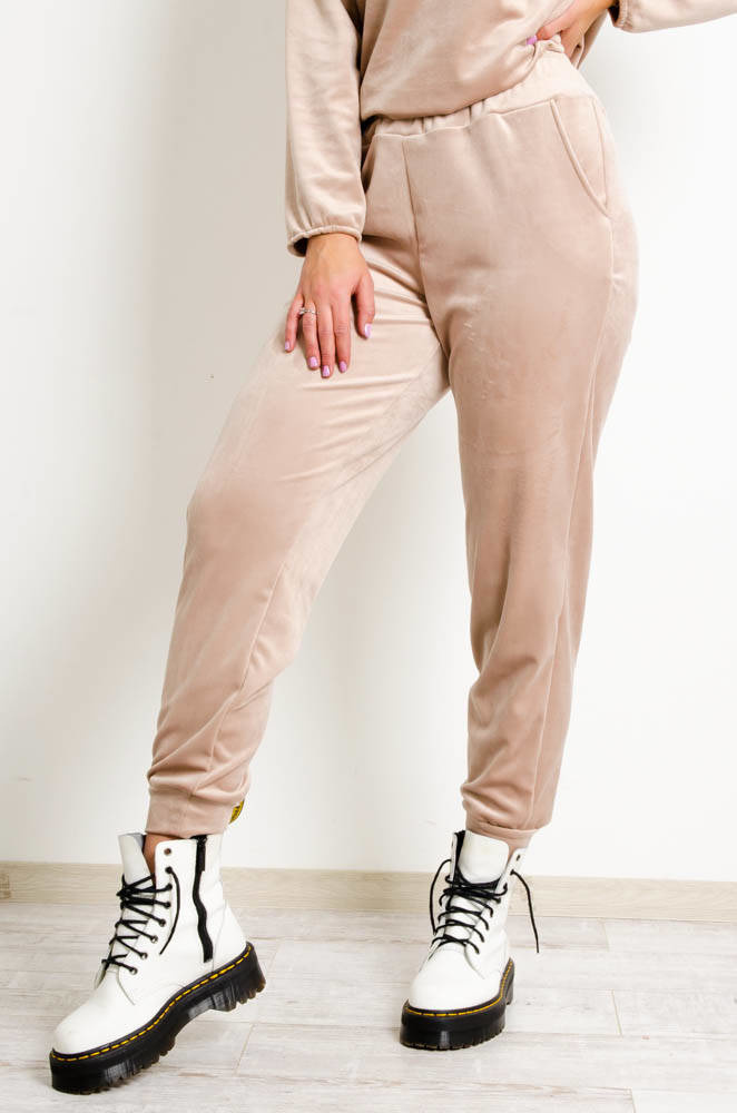 BEŻOWE WELUROWE SPODNIE DRESOWE