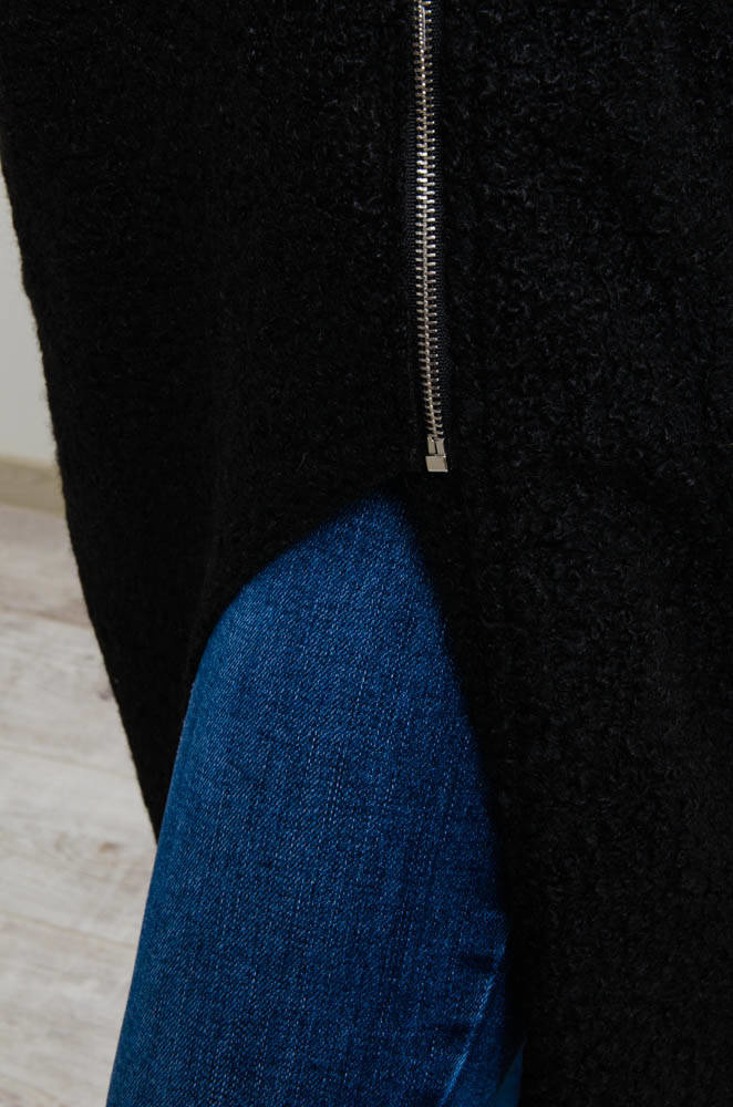 CZARNY MELANŻOWY PŁASZCZ Z WYCIĘCIEM