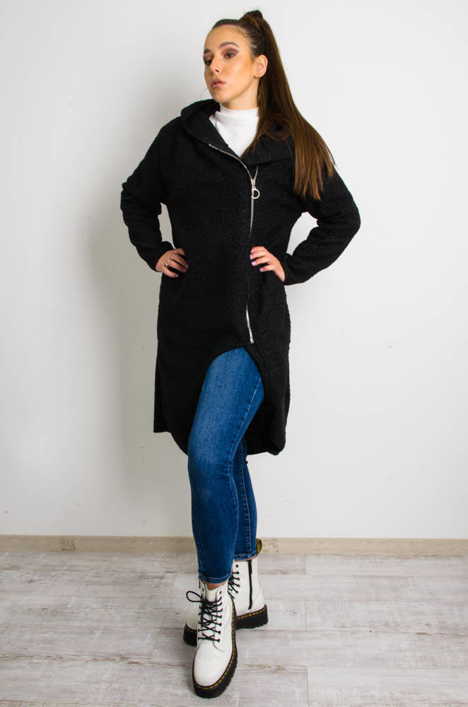 CZARNY MELANŻOWY PŁASZCZ Z WYCIĘCIEM