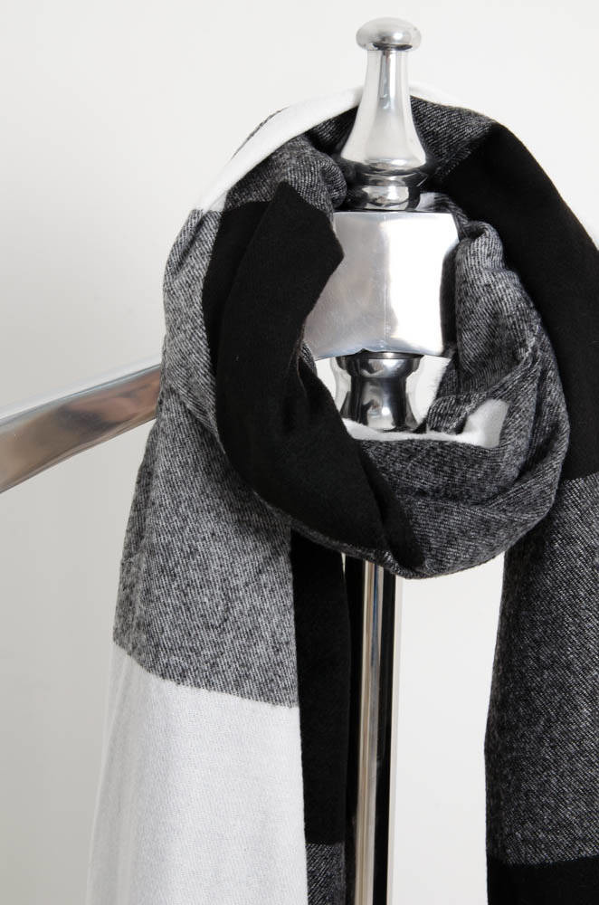 CZARNO-BIAŁY SZAL W KRATKĘ Z FRĘDZLAMI