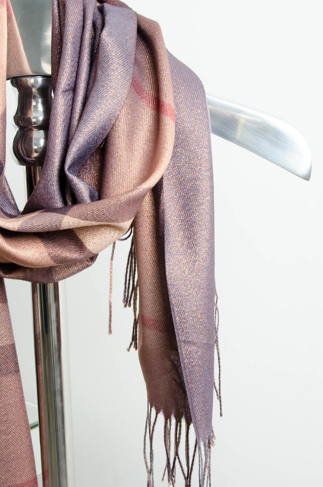 BRĄZOWY SZAL W KRATĘ ZE ZŁOTĄ NICIĄ