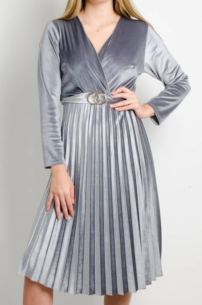 SZARA WELUROWA SUKIENKA Z PLISOWANIEM