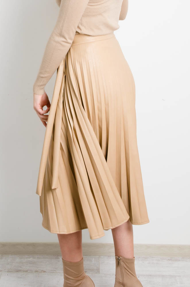 BEŻOWA PLISOWANA SPÓDNICA Z EKO SKÓRY