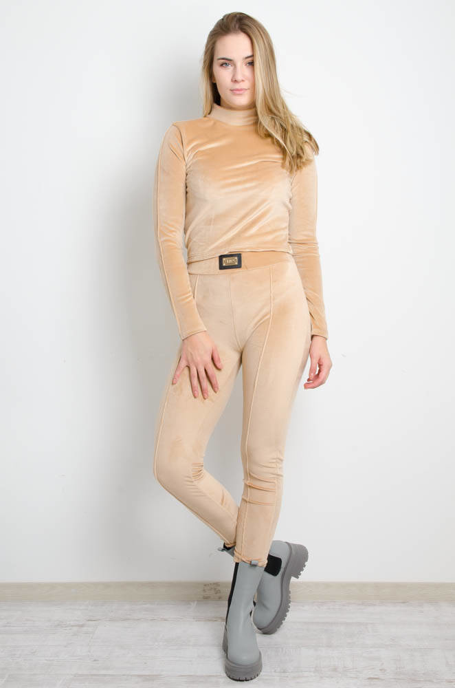 BEŻOWY WELUROWY DOPASOWANY KOMPLET