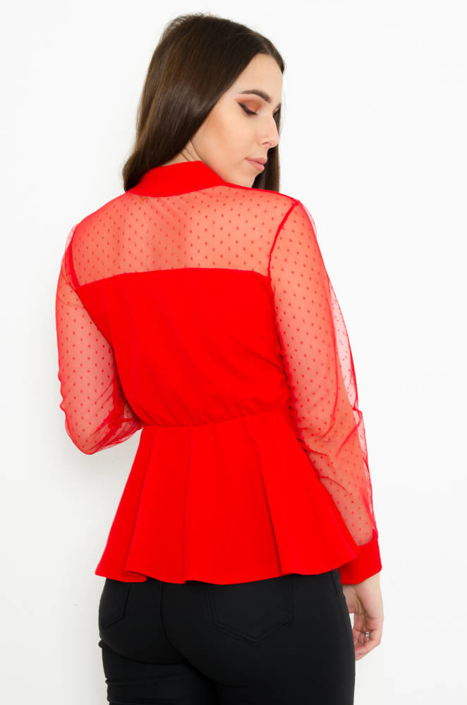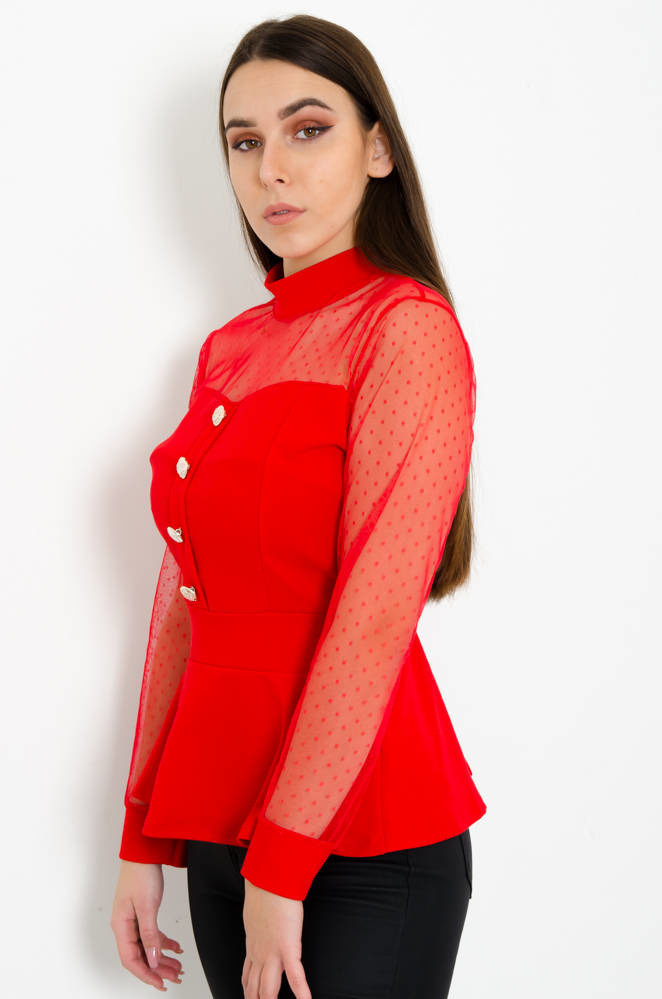 CZERWONA ELEGANCKA BLUZKA BASKINKA Z OZDOBNYMI GUZIKAMI