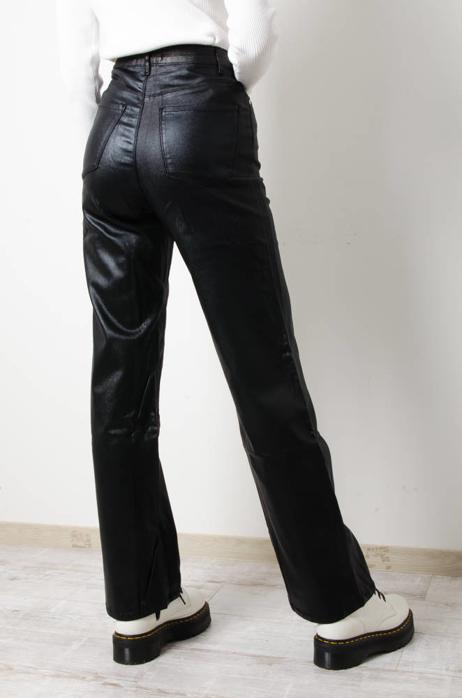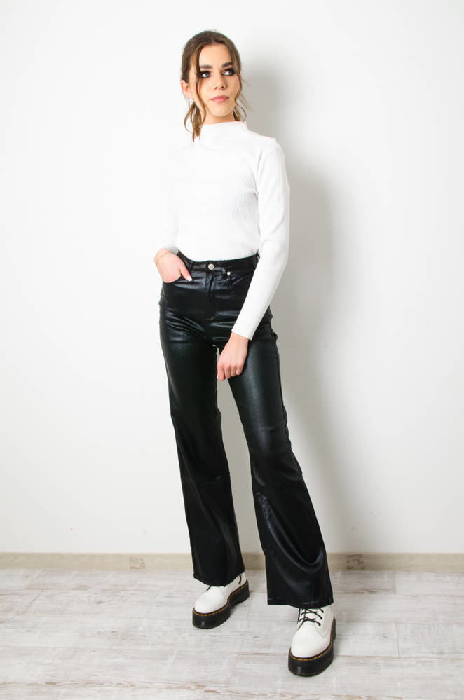 CZARNE SPODNIE DZWONY Z IMITACJI SKÓRY